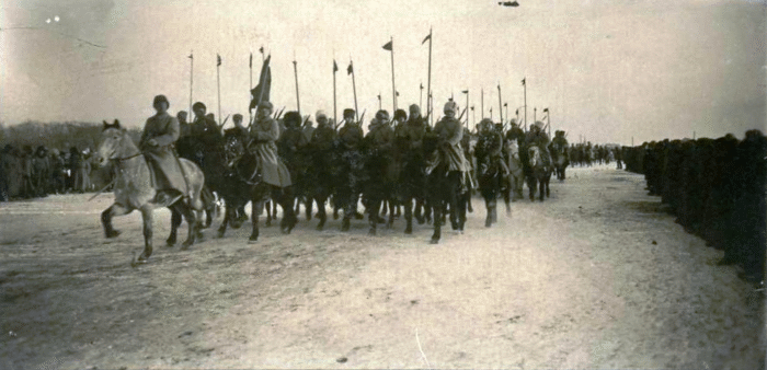 Кавказская кавалерийская Часть III Донского корпуса на Юрьев день, парад, Новочеркасск 23.04.1919
